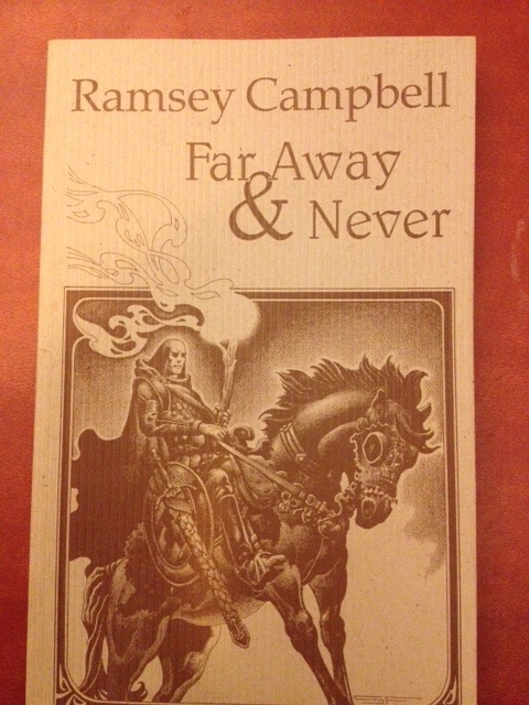 FAR AWAY AND NEVER collects the fantasy stories of Ramsey Campbell. Ramsey has gained his fame primarily as a horror writer, so it was a rare treat to see how he handled my second favorite genre of stories. A few years back I looked into buying a copy of this collection, originally published in 1996, but used copies were astronomically priced. Since then, Necronomican Press has rereleased it for $7.95 + shipping. When it arrived at my house, I put everything else aside and plunged in, loving ever minute of it.